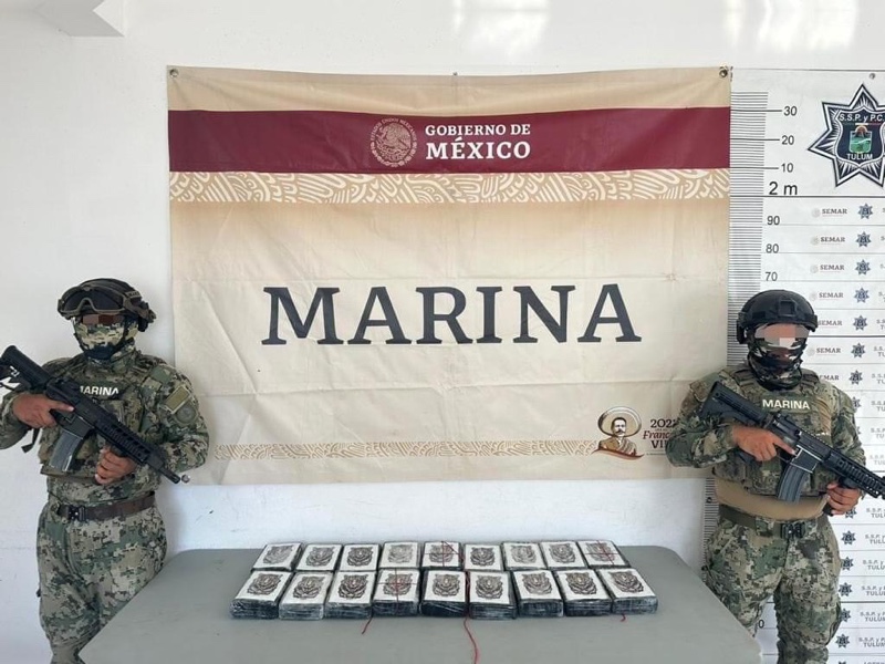 La Armada de México asegura aproximadamente 18,576 kilogramos de presunta droga en inmediaciones de Tulum, Quintana Roo