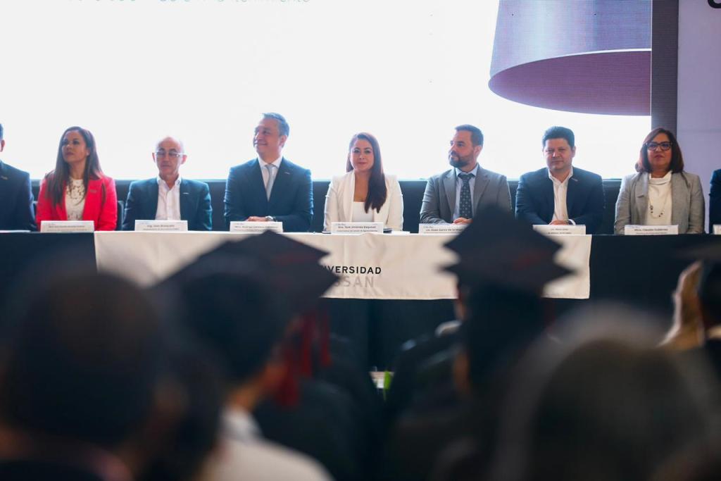“En Aguascalientes viven personas excepcionales, mujeres y hombres que hacen al Gigante de México. Lo que ustedes tienen el día de hoy es un gran mérito porque son colaboradores de la compañía más grande en México y una de las más importantes a nivel mundial. Ustedes dedicaron su tiempo a estudiar sin dejar de atender sus obligaciones familiares y eso es de gigantes. Nuestra gente tiene un pasaporte al mundo que traspasa fronteras y se llama educación; graduarse de la Universidad Nissan los capacita para cumplir de mejor manera sus actividades diarias y que puedan emprender nuevos proyectos, por eso cuenten con nosotros para lo que necesiten”, les dijo Tere Jiménez.