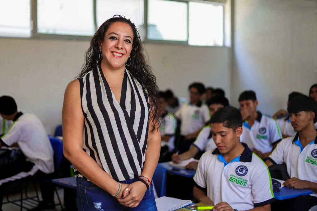 Para Tere Jiménez el inglés es una herramienta clave, ya que abre puertas a mejores oportunidades; con ese fin, este año se aumentó el presupuesto para que las niñas y niños reciban educación bilingüe desde la primaria. Además, con el impulso del Modelo de Educación Dual, los universitarios pueden trabajar mientras estudian, facilitando su ingreso al mundo laboral.
