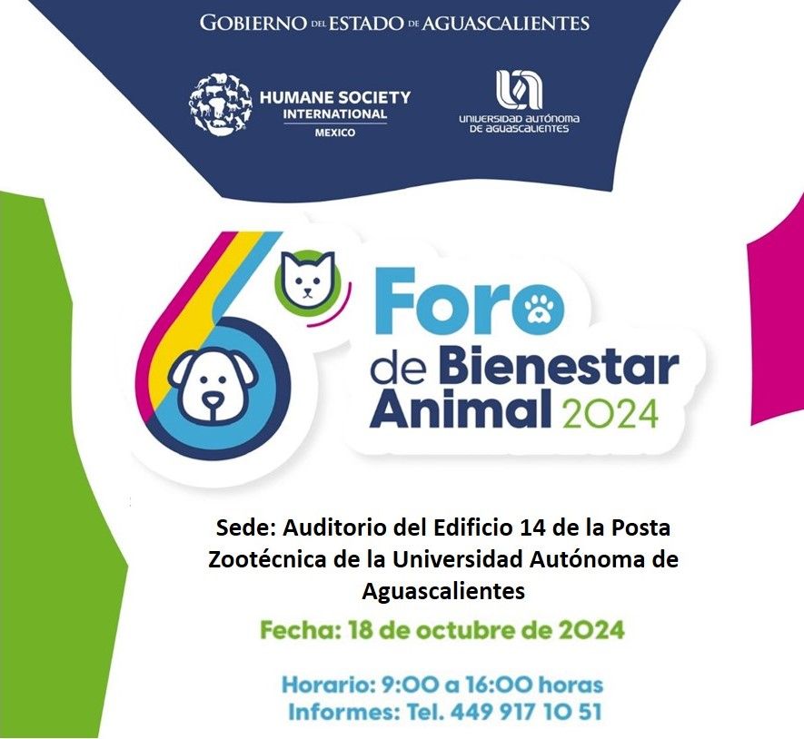 El Gobierno del Estado de Aguascalientes, a través de la Procuraduría Estatal de Protección al Ambiente (Proespa), la Humane Society International (HSI) y la Universidad Autónoma de Aguascalientes (UAA) invitan al público en general a participar en el 6.º Foro de Bienestar Animal 2024.